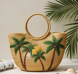 Bolsos de mano de paja a la moda de verano, bolso de paja de playa tejido para mujer, bolso de playa de hombro tejido