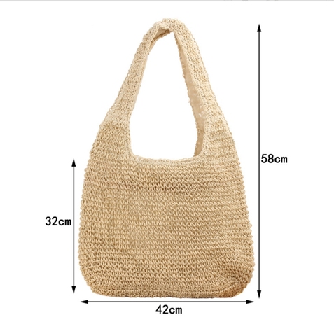2025 logotipo personalizado de fábrica, cuerda de papel de gran capacidad, bolso de paja de rafia, bolso de hombro, bolso de poliéster, bolso de playa de paja de papel